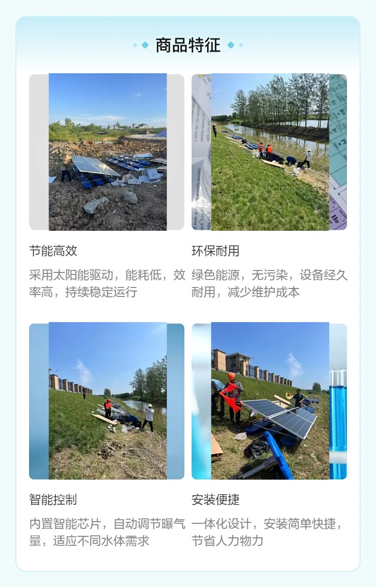 • 安装方便:多为漂浮式安装,可随水位升降,不受水位变化影响,安装时无需复杂的基础建设,只需将其固定在合适位置即可。